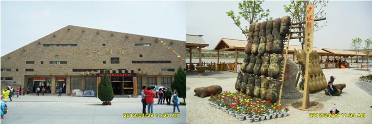 我們在沙坡頭旅游黃河區(qū)(南區(qū))買了門票,隨著人流,進(jìn)入景區(qū)。景區(qū)主大門是一個四四方方的立柱,加上“井”字形建筑造型構(gòu)成,立柱頂部呈長城烽火臺垛口造型,立柱右側(cè)上部有三個鎏金大字“沙坡頭”。 在景區(qū)大門東側(cè),是沙漠博物館,它的頂部呈金字形造型,游客可以免費進(jìn)去參觀。